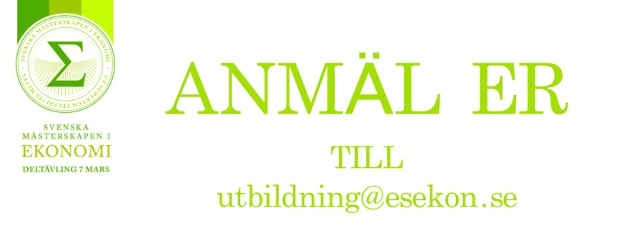 PS. Samtliga ämnen i tävlingen är på grundnivå och innefattar företagsekonomi och nationalekonomi! Hur coolt vore det inte att ha på Cv:t att man vart med i SM i ekonomi och kanske till och med vunnit de? Så skicka in en anmälan med en gång!